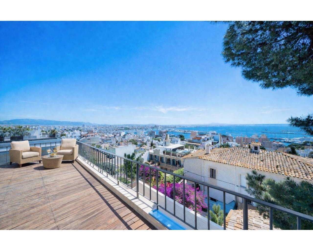 In erhöhter, privilegierter Hanglage von El Terreno befindet sich diese elegante, südlich ausgerichtete Villa mit einem beeindruckenden Panoramablick über die Bucht von Palma, den Hafen, die Stadt und das offene Meer. Die Immobilie vereint stilvolle Architektur, höchsten Wohnkomfort und mediterranes Lebensgefühl und zählt zu den attraktivsten Kaufobjekten in diesem exklusiven Stadtteil.