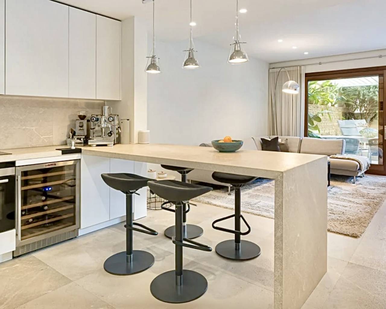 Das Townhouse überzeugt durch hochwertige Materialien und eine klare, zeitlose Gestaltung. Mallorquinischer Naturstein, moderne Architektur und Markengeräte von Bosch und Siemens unterstreichen den Qualitätsanspruch dieser Immobilie in Son Espanyolet. Die offene Küche ist funktional und stilvoll zugleich, während die Wohnbereiche ideal für den Alltag und gesellige Abende konzipiert sind.