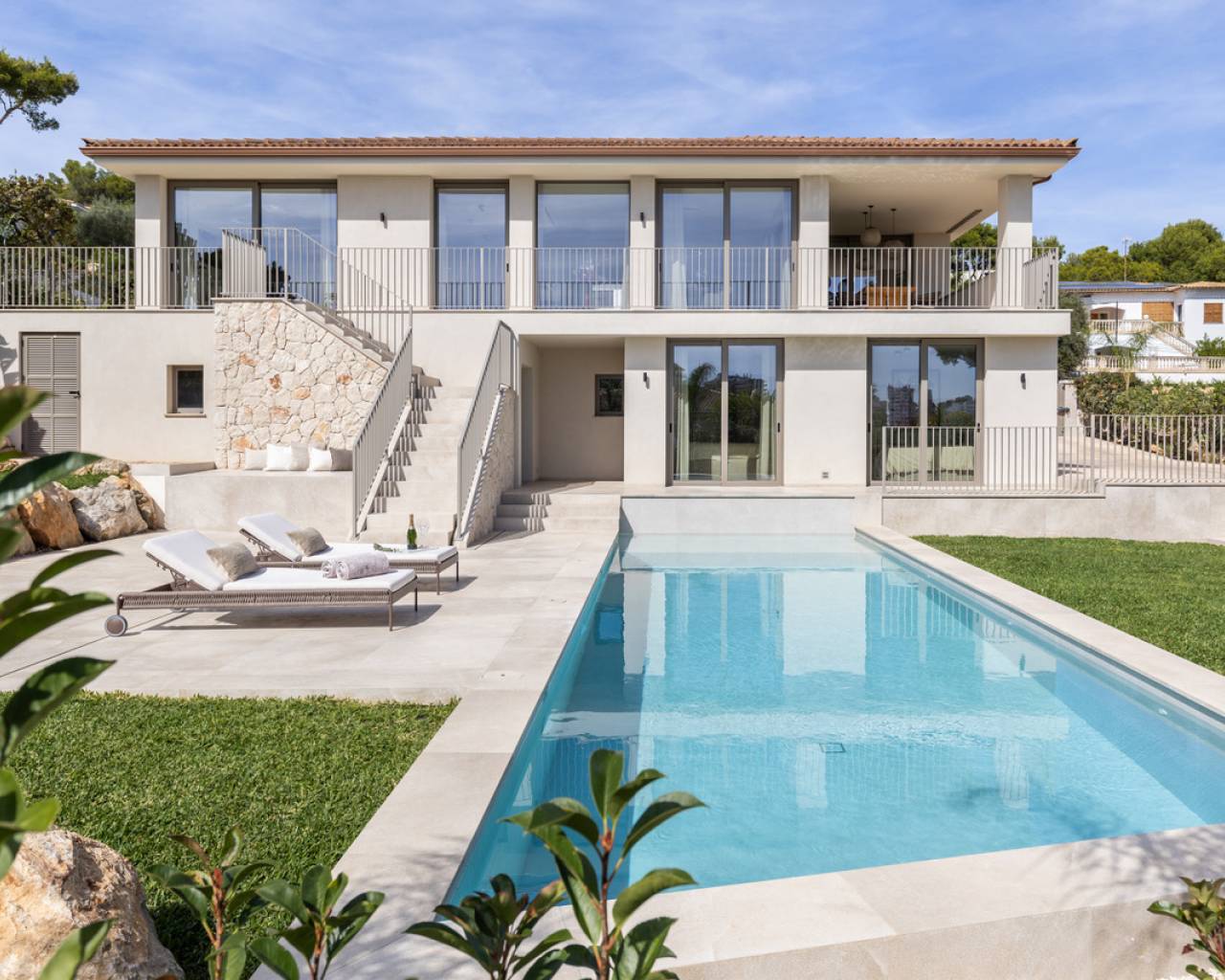 Das vollständig renovierte Objekt verbindet modernen Luxus mit zeitlosem mediterranen Charme. Das elegante Design fügt sich harmonisch in die natürliche Umgebung ein und bietet einen ruhigen Rückzugsort in Palmanova. Der Außenbereich beeindruckt mit einem liebevoll gestalteten Garten, der von alten Obstbäumen geprägt ist, sowie einem modernen, stilvollen Pool. Casa Nadala ist ideal für diejenigen, die einen ruhigen und gleichzeitig gehobenen Lebensstil suchen. Traditionelle Elemente werden hier mit modernem Komfort vereint, sodass ein perfektes Gleichgewicht zwischen Innen- und Außenleben entsteht.