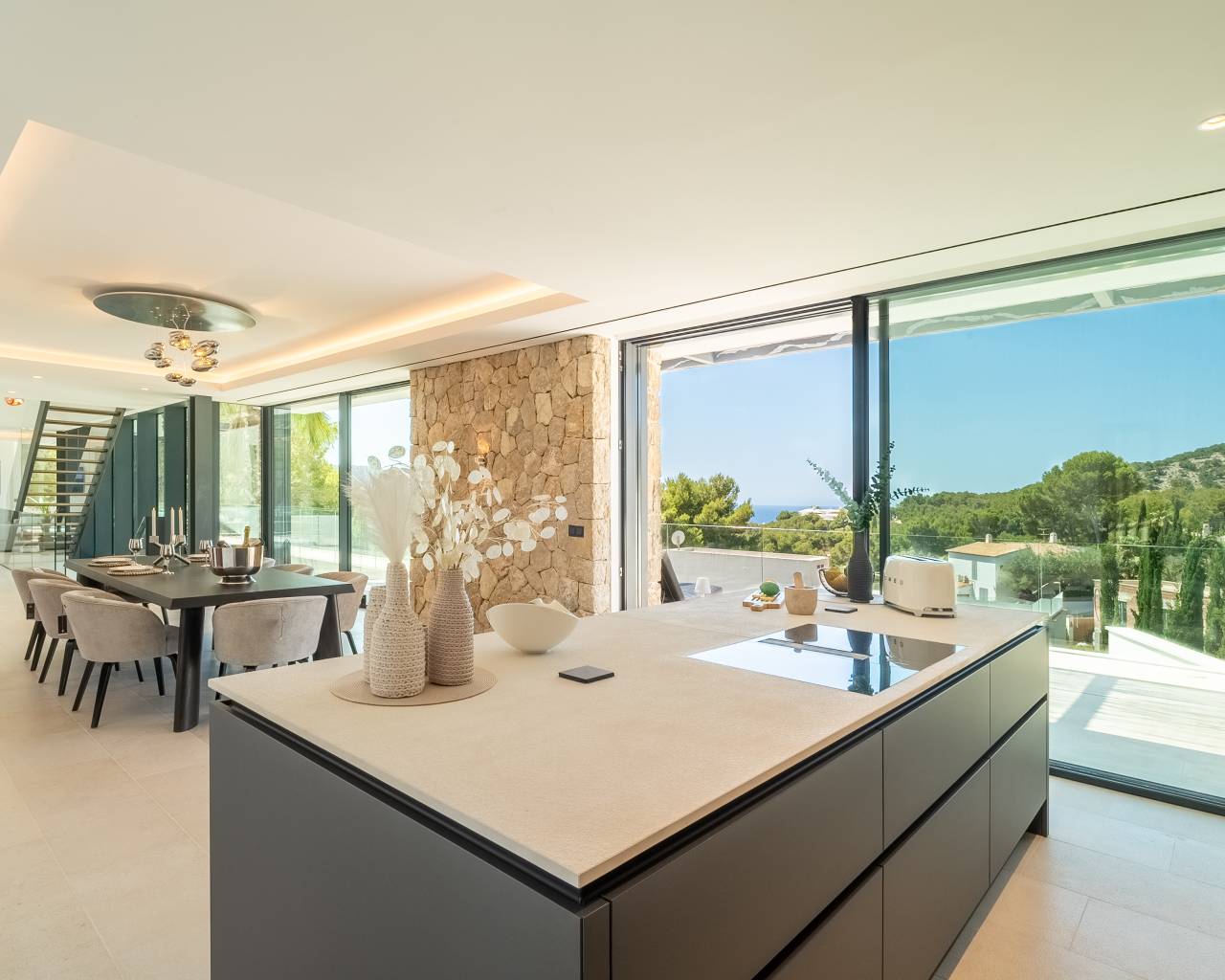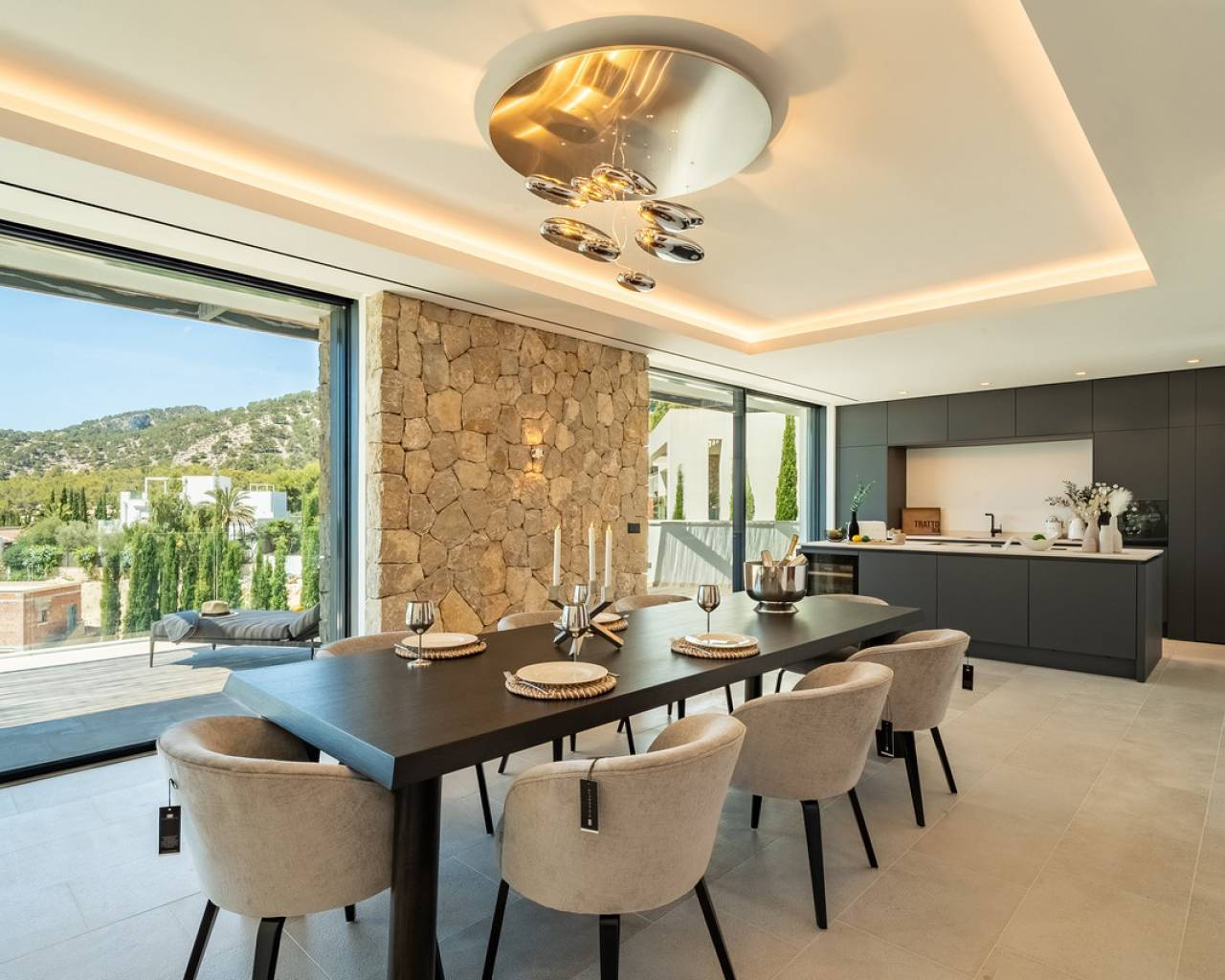 Puerto Andratx is located on the enchanting south-west coast of Mallorca, just under 30 kilometres from the capital Palma. One of the most beautiful marinas on the island and the fishing harbour, which is perfectly integrated into the town, are lined up around the large bay next to the town centre. Along the harbour promenade you will find a large selection of good restaurants, cafés and bistros. There are three small sandy beaches in the town itself. Otherwise, you can reach the beaches of Camp de Mar, Paguera, Cala Fornells or San Telmo in 5 to 10 minutes by hire car. There is also a beach club with access to the sea in Cala Llamp and on the La Mola peninsula. The area surrounding Puerto de Andratx is particularly interesting for water sports enthusiasts. Golfers will find one of the most beautiful golf courses in Mallorca, the Golf de Andratx in Camp de Mar. The golf courses of Santa Ponca, Poniente and Bendinat are approx. 15 minutes away by car. The nearest motorway exit in the direction of Palma de Mallorca is approx. 1 km away - Palma