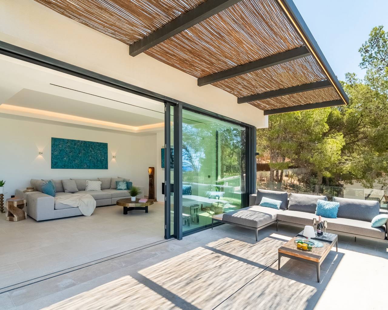 The living and dining area presents itself in a light and bright ambience and impresses with a modern, open-plan kitchen. The bedrooms are fitted with natural stone and parquet flooring. Air conditioning and underfloor heating are also included. The plot covers 1,075 m² and offers a pool, garden and sunny terraces.